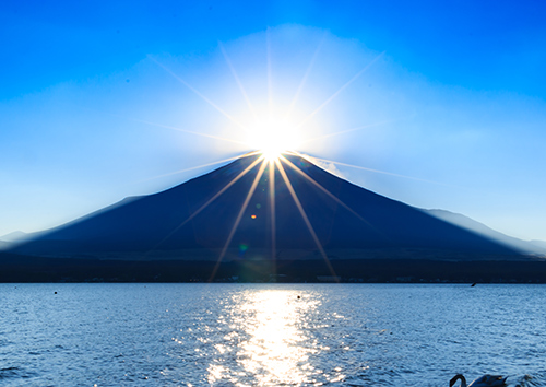 寒川神社は、春分/秋分の日に、富士山へ沈む夕陽「ダイヤモンド富士」
