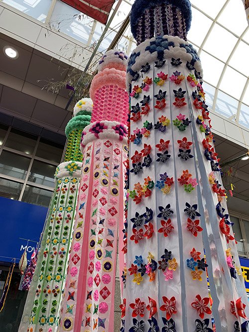 東北夏まつりの一つに仙台七夕があります。今年は中止とのことですが、去年観に行った時の写真をご覧くださいませ。