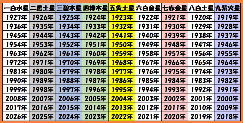 ★本命星早見表作成しました★