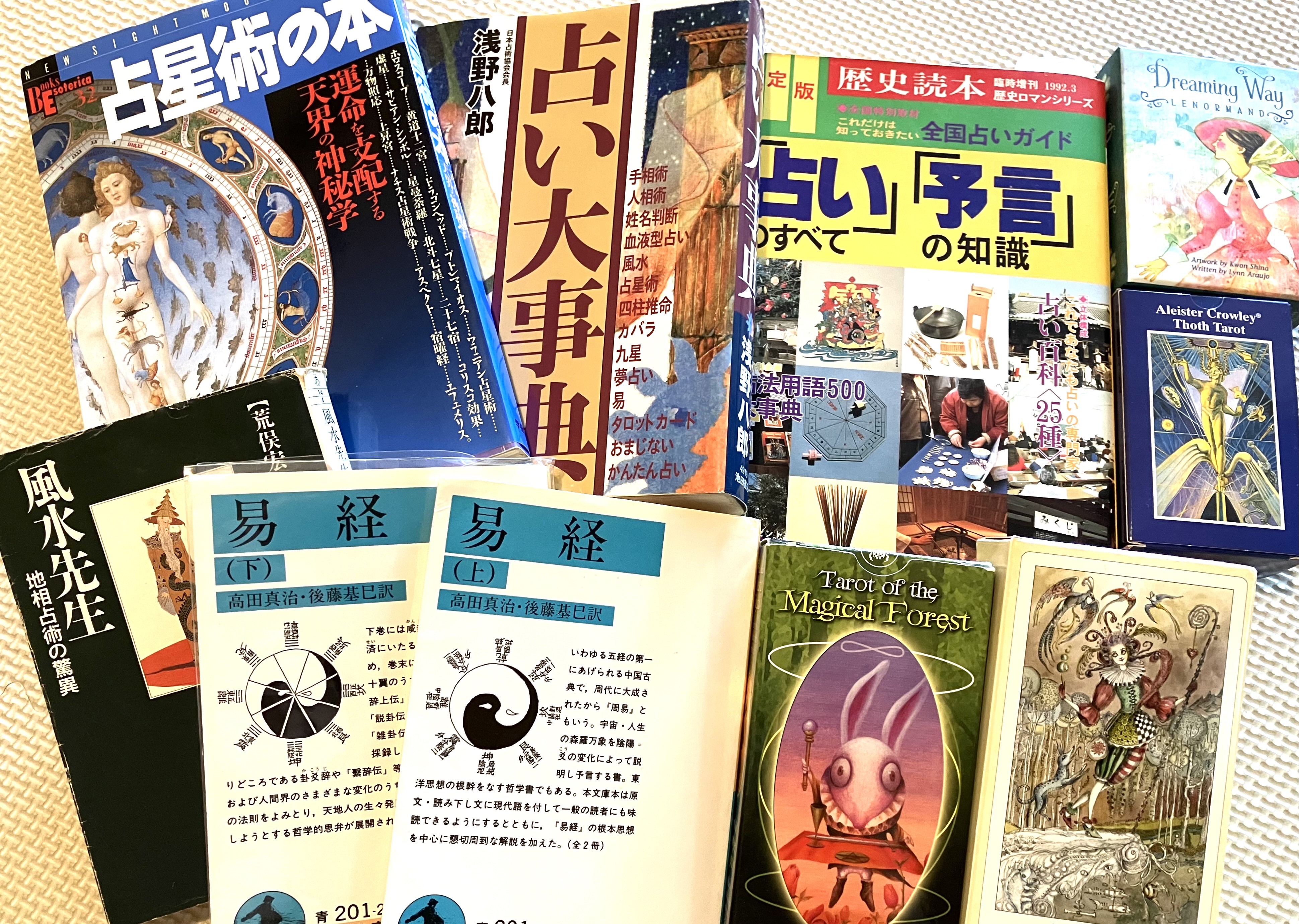 引越しを機に、持っていた、たくさんの占いの本や様々なタロットなどのカード達も風を通し、心機一転でございます。