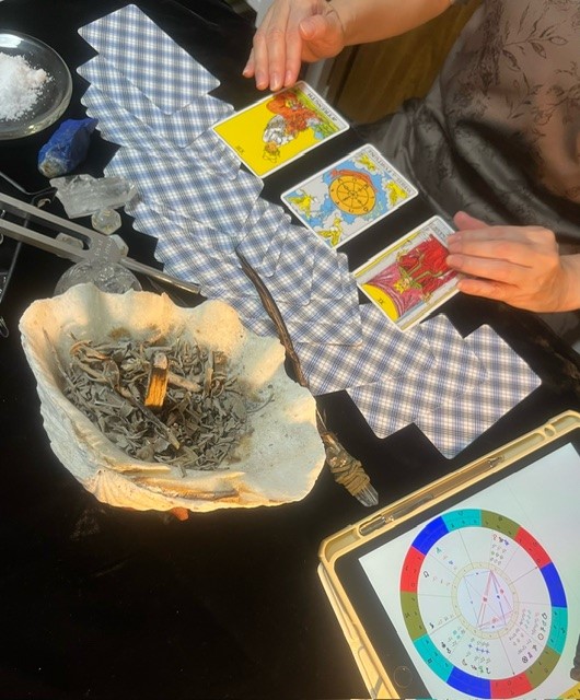 鑑定に使用するカードの浄化は、クリスタルや椿大社の砂塩、満月による浄化、音叉、シンギングボウルでの音による浄化、パワーストーンやスマッジングによる浄化、リセットのためにタロットカードの交換をします。