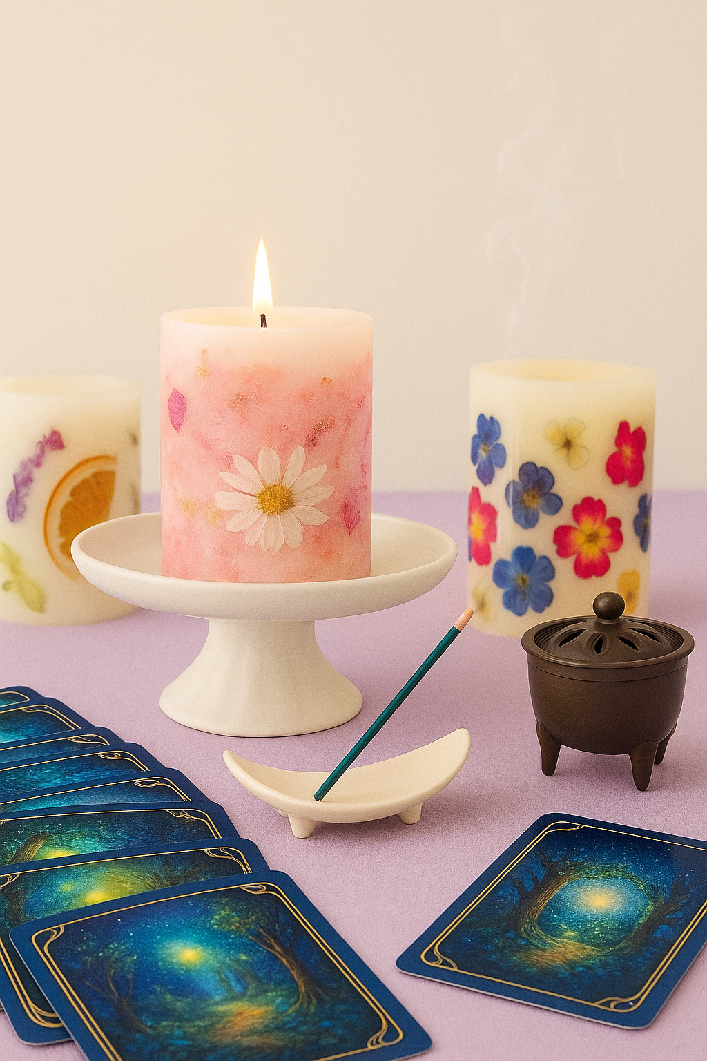 ゆらめく炎と香りの余韻が、カードの声をより鮮やかに映し出し、