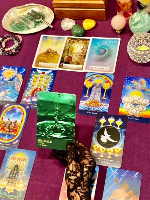 私の鑑定では、カードから視てとれる現状と、可能性の高い未来の把握、ご相談者さまのお心に寄り添った上で「願望成就」に必要な新しい捉え方や考え方をご提案させて頂く事により、ご相談者さまに「新たな気付きの瞬間」がもたらされ、「成就」と言うゴールを一緒に目指し、皆様の未来が「今ここから」よりしなやかで温かいものに広がって行く事を、いつも心よりお祈りしております。